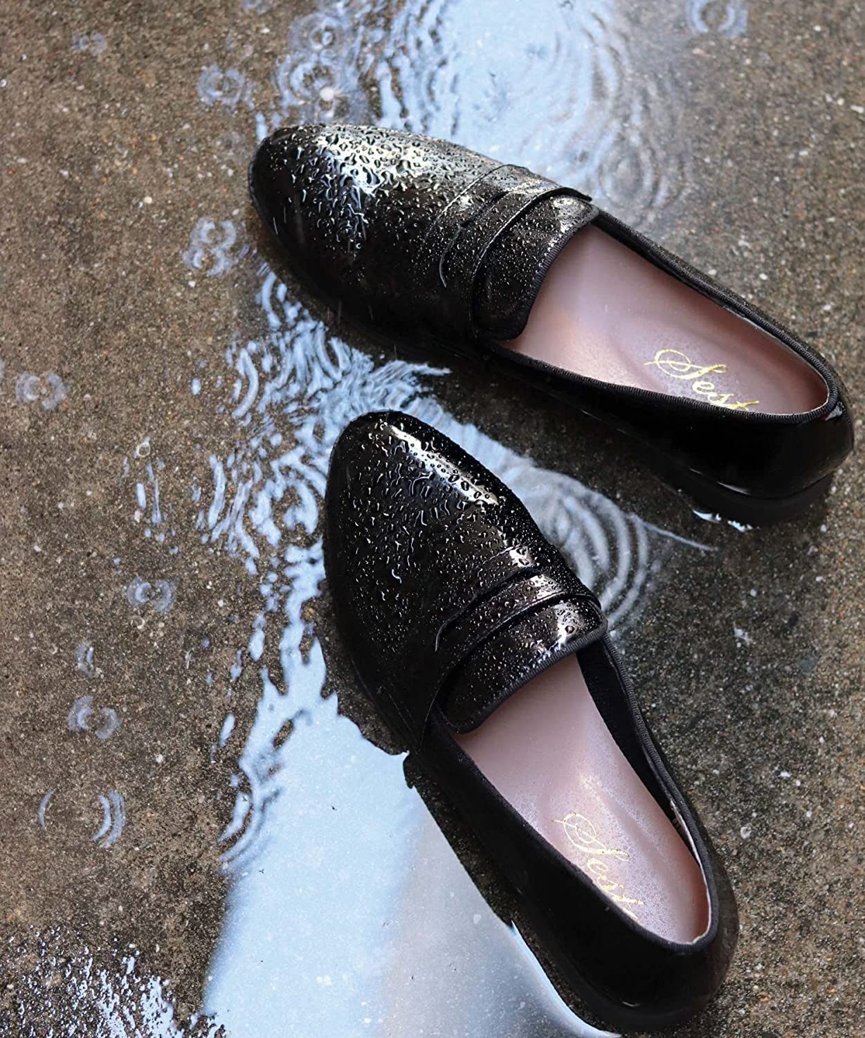 レインパンプスを選ぶ際に注目したいのが、「防水」と「撥水」の違いです。防水機能は水の侵入を防ぐものであり、撥水機能は表面に水を弾く加工が施されたものです。