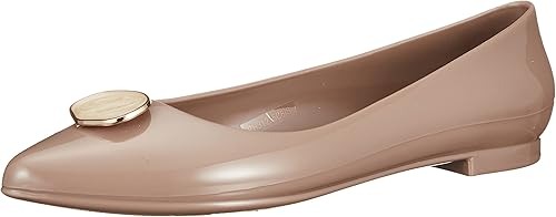 雨の日のお出かけも、足元から気分を上げてくれるレインパンプス。バレエシューズスタイルのボディに、艶消しゴールドの金具を使ったリボンモチーフがアクセントとなり、洗練された印象を与えます。